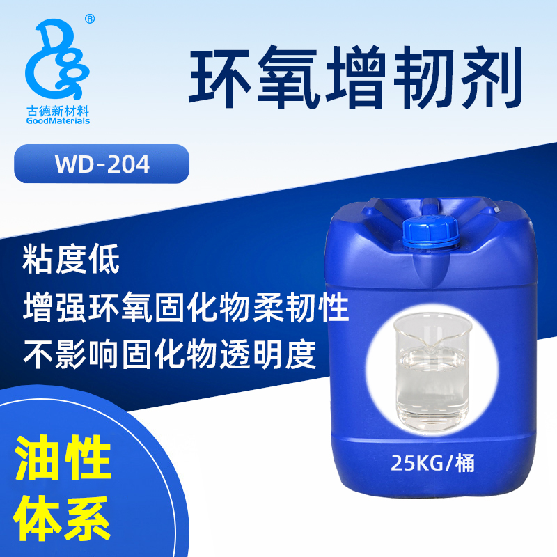 粘度低,添加WD-401能數(shù)倍提高環(huán)氧樹脂斷裂韌性(GIC),能保持較高的耐熱性,可使粘接強度大幅度上升,疲勞強度大幅度提高,低溫抗開裂能力、抗冷熱沖擊能力顯著提高。